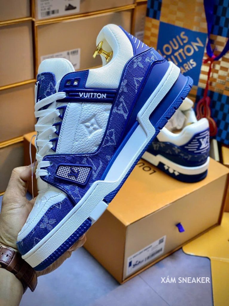Giày Louis Vuitton LV Trainer Monogram Denim White Blue Best Quality
