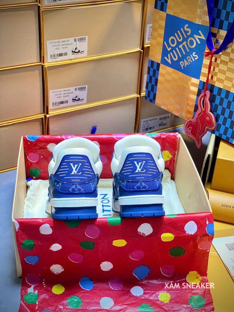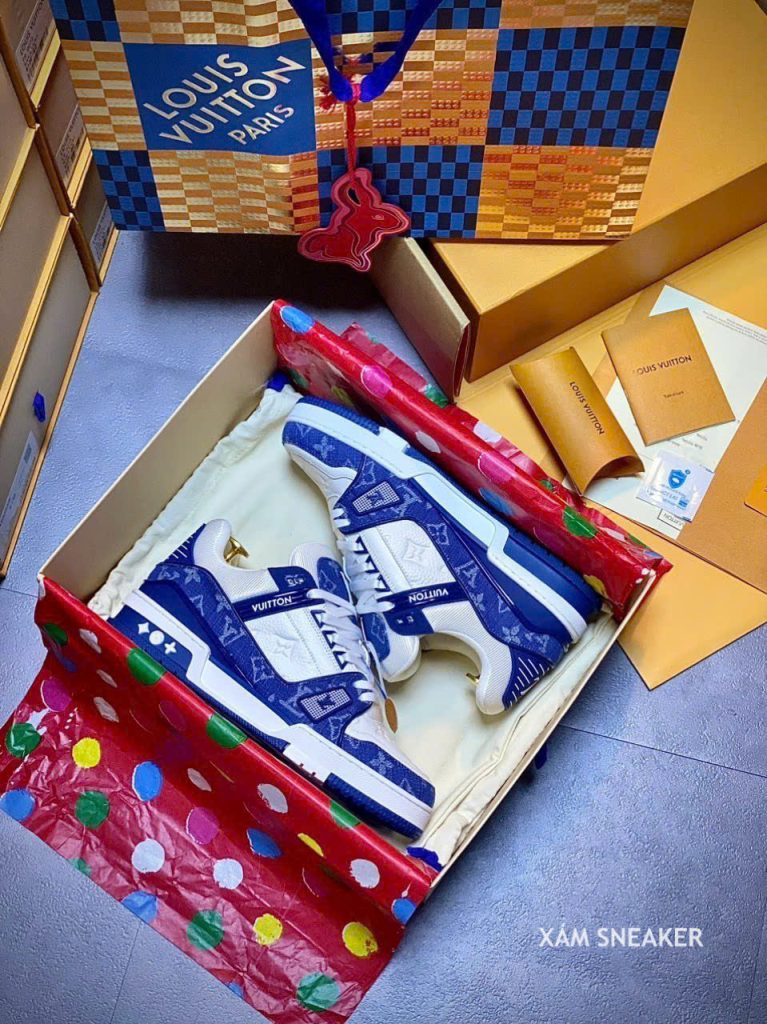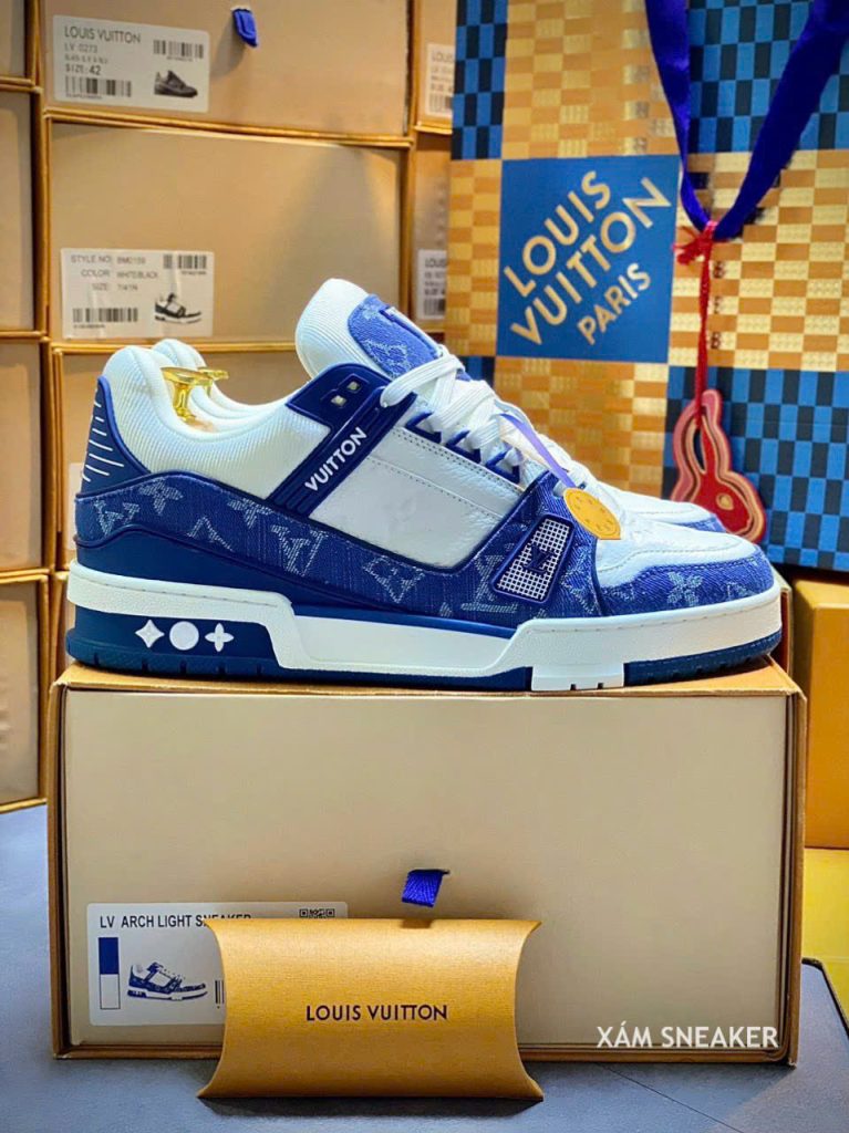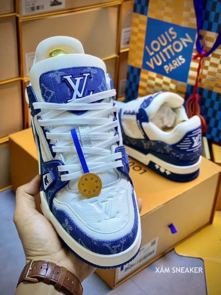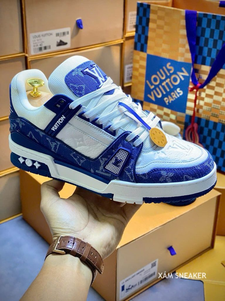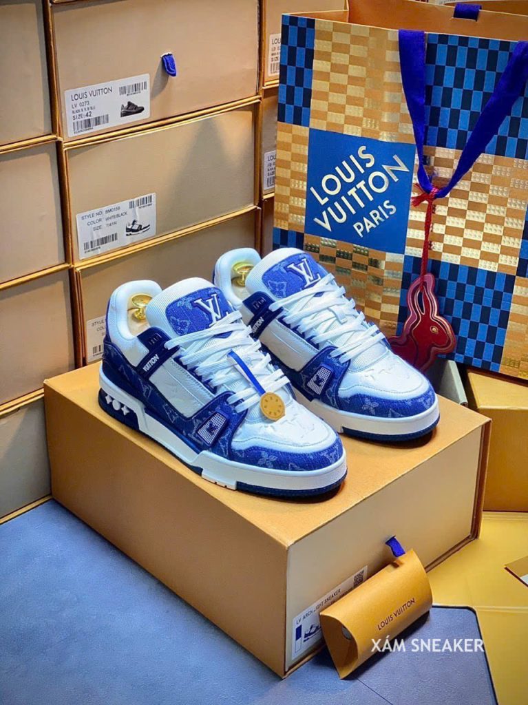 Giày Louis Vuitton LV Trainer Monogram Denim White Blue Best Quality